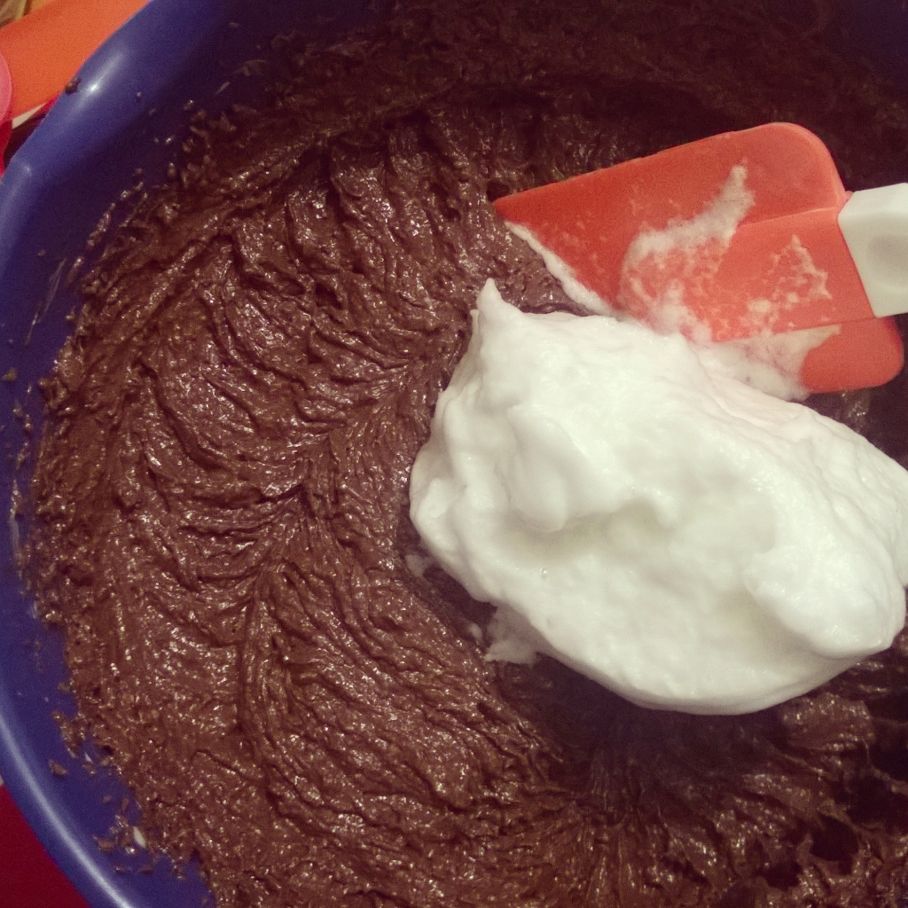 – Чрез шпатула ги добавяте на 3-4 пъти, като бъркате внимателно, докато сместа се хомогенизира за пореден път.