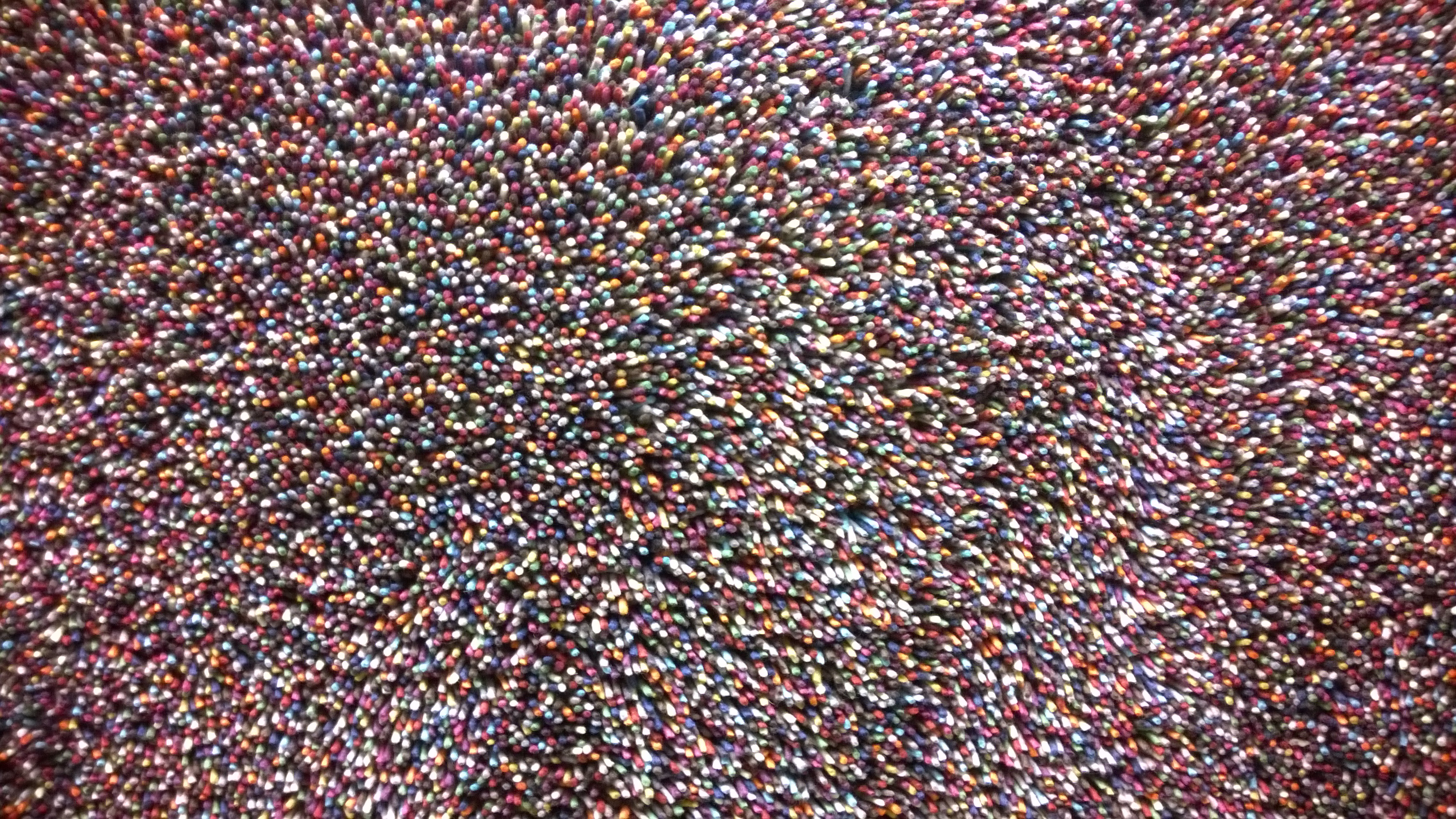 Нека погледнем снимките отгоре. Да започнем от №1. Виждаме различните цветни влакна (това е един готин килим от IKEA), като всяко от тях изпъква и се отличава от останалите. Когато в полезрението ни попадат все повече и повече разноцветни влакна, възприятието ни за цялостната картина се променя осезаемо. Вместо да виждаме куп отделни цветове, започваме все повече да виждаме хомогенна маса, съставена от множество малки, разноцветни елементи.