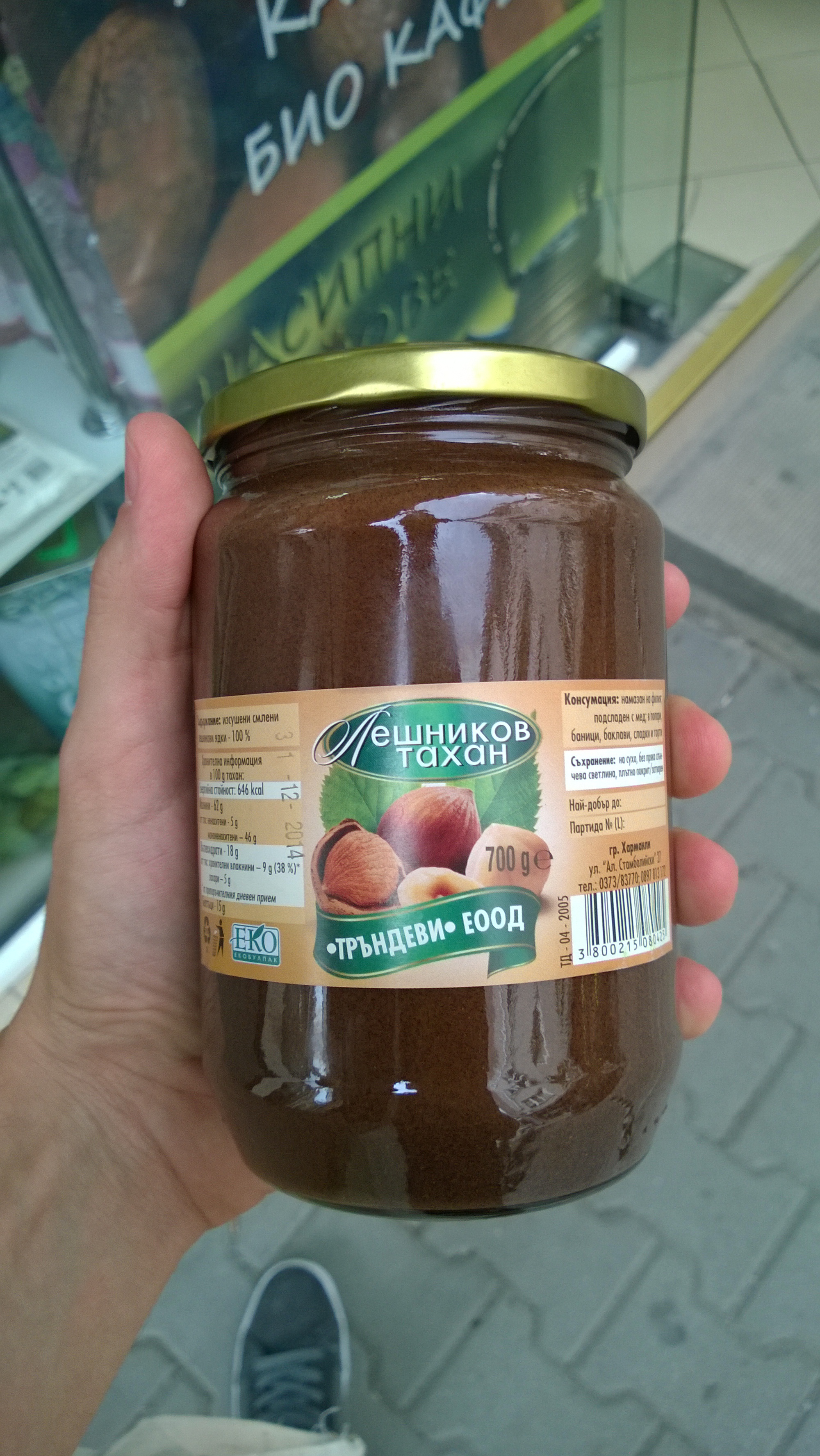 P.S. Лешниковият тахан на “Тръндеви” е едно от най-страхотните неща, които съм опитвал. Не съдържа захар – само смлени лешници – но аз бих заместил всяка Нутела на света с него. Трудно успях да открия – търсих на Женския пазар, из биомагазини, магазини за ядки… Накрая открих останали няколко буркана в магазинчето за специализирани храни на Шишман №20, но обикновено може да се открие и в Зоя на Аксаков, и в големия магазин за ядки и подправки в началото на Женския пазар (откъм Пиротска). Надявам се, че производителят ще пусне нова партида. Голяма. Навсякъде! 🙂