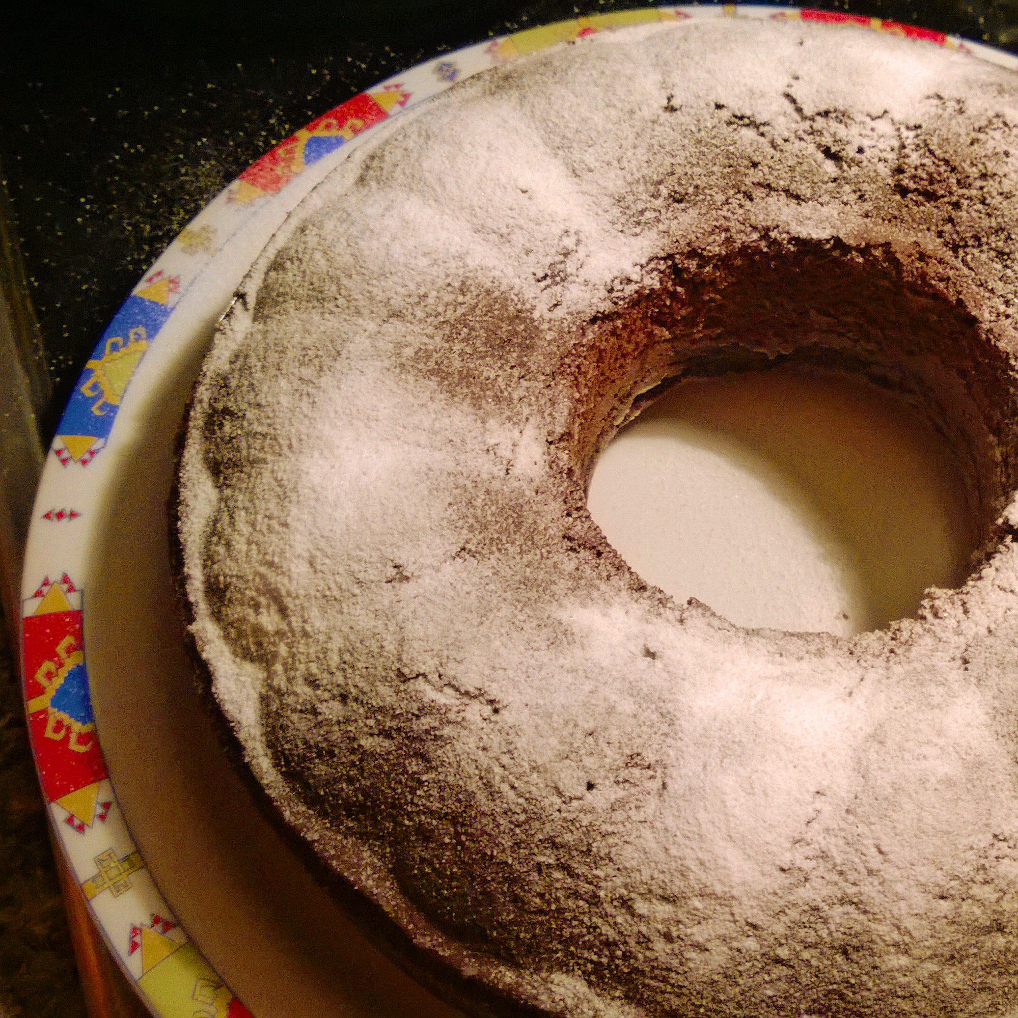 – Намазнявате хубаво един ринг за торта, с онова дъно, което има нещо по средата (bundt cake) и го поръсвате с какао, или брашно, или и двете.