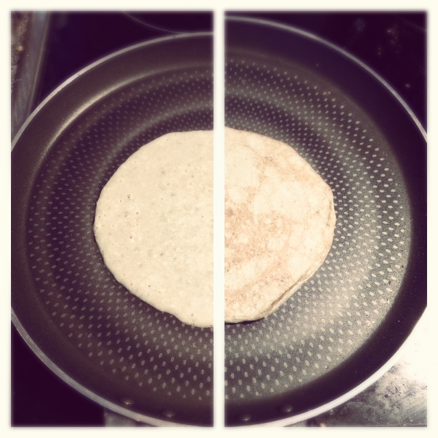 Основната рецепта е доста простичка – 2 яйца на 1 голям банан, като бананът се смачква на каша, после се разбива хубаво с миксера с яйцата, et voila! Сместа може да стане по-гъстичка, но и без това тези палачинки приличат повече на американските pancakes, отколкото на френските crêpes – т.е., по-малки и по-дебели
