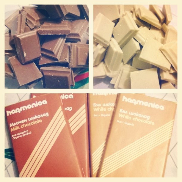 – По принцип, мислех да карамелизирам хубав бял шоколад, както препоръчва Йоана, но както писах по-горе, успях да намеря само Милка, а ме мързеше да обикалям повече магазини.