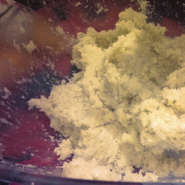 – Добавих 250гр масло на стайна температура (или малко по-топло – за да е мекичко) и разбих с миксера, докато всичко се хомогенизира.