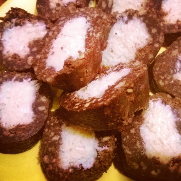 След това реших, че ще приготвя един особен сладкиш, поради което ми се наложи да ида на пазар. (По-долу ще опиша и рецептата.) Скочих до Кауфланд и до Билла, че са ми най-близките големи магазини. Да знаеш, че асортиментът на шоколади е идентичен. Което ще рече, че в нито един от двата магазина няма хубав бял шоколад – само един единствен модел Милка, за която знаеш мнението ми.