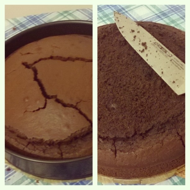 Моят кейк много се надигна, та ми се наложи да му отрежа купола, за да го изравня. Но пък стана много пухкав.