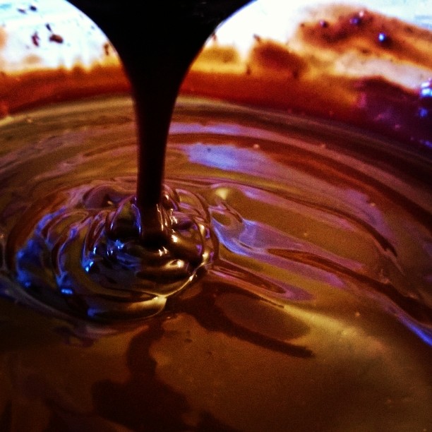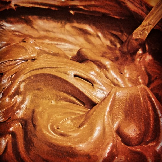 Е, днес заложих на яйчен крем, а върху него – ганаш от черен шоколад със смлени сурови лешници.