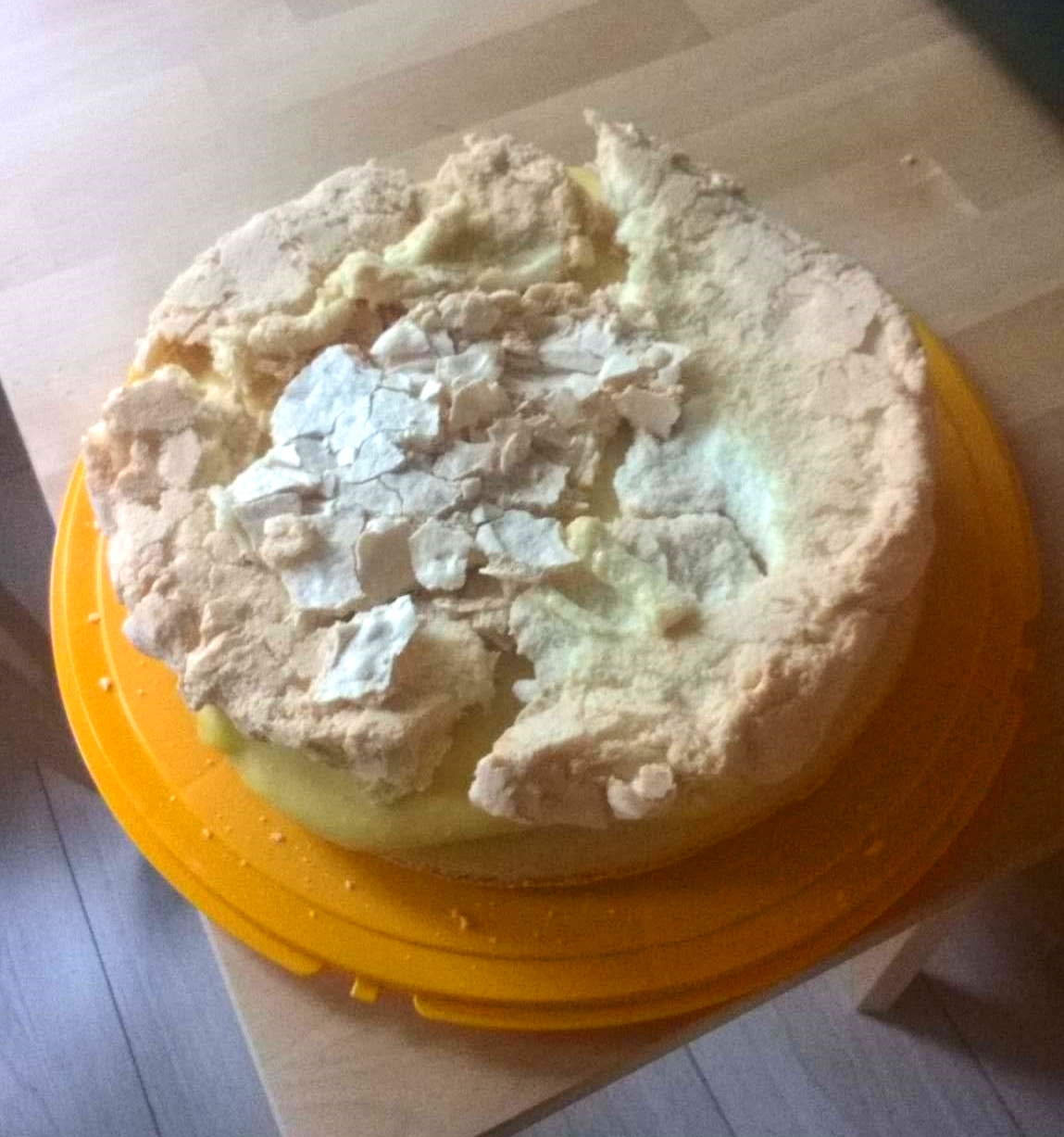 Та, пандишпанът вече е охладен и намацан с някакъв крем, време е да приготвим една Павлова: