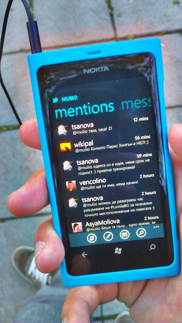 Всъщност, в момента, в който тези два проблема бъдат разрешени, мисля, че Nokia Lumia 800 би могла да се превърне и в много добър бизнес телефон – има много добра интеграция с Microsoft Office, има допълнително място за съхранение на данни в облачния SkyDrive, има какви ли не начини да се навърже с мейли (Gmail, Hotmail, Exchange, POP/IMAP), както и, разбира се, всевъзможните социални мрежи. Е, разбира се, няма Instagram (все още?), но както няколко човека коментираха, това е по-скоро предимство 🙂
