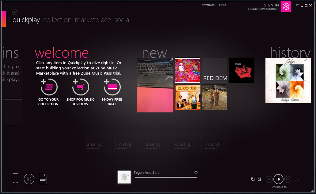 Има и една особеност, с която потребителите на iOS са свикнали, но вероятно е особена за хората на Android – музика, филми и снимки се качват на телефона само през приложението Zune. То изглежда сякаш е от някакъв Windows от бъдещето, доста различно като визия и интерфейс, но като цяло е приятно.