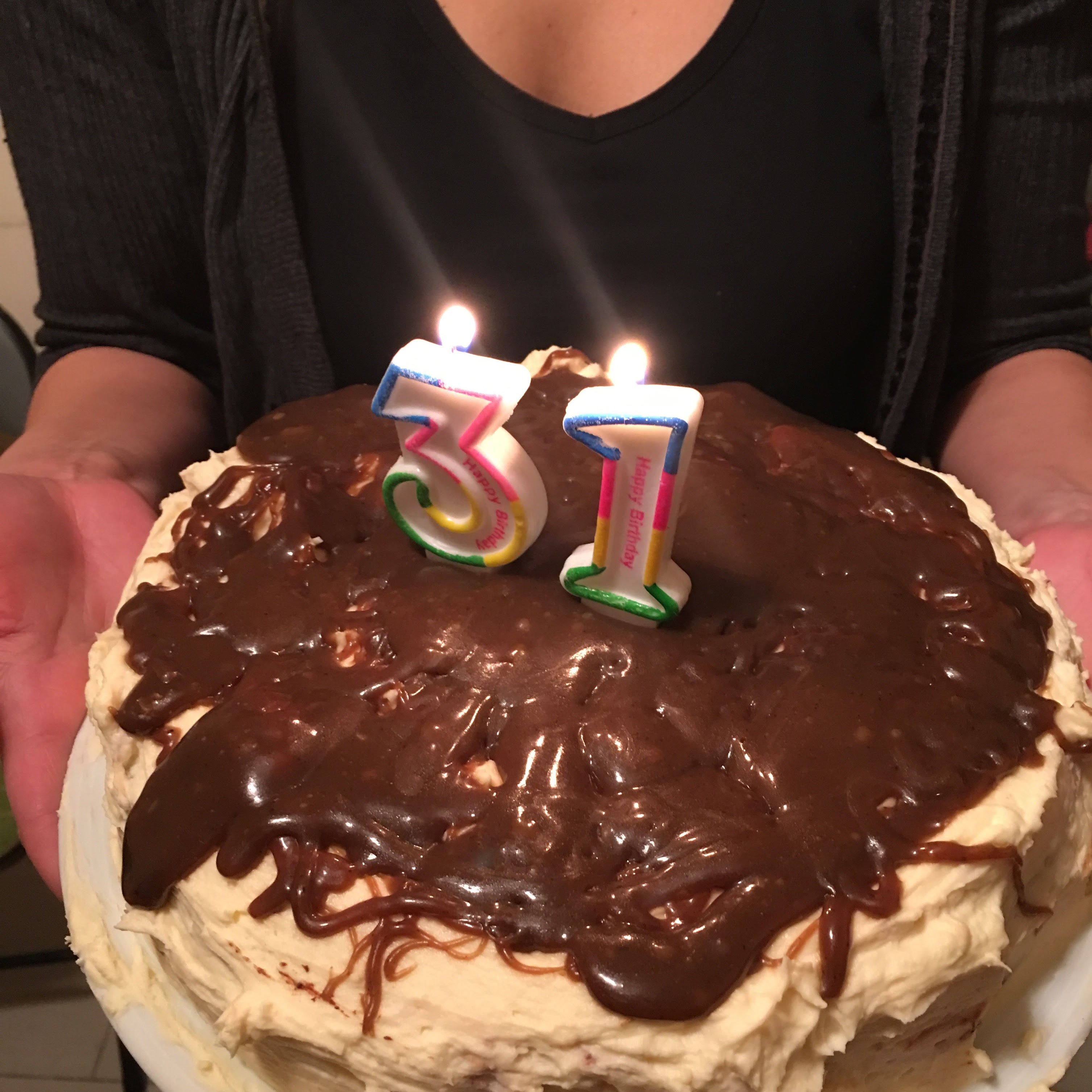 Ето я тортата, омазана с Бейлис крем и наплескана с тофи…
